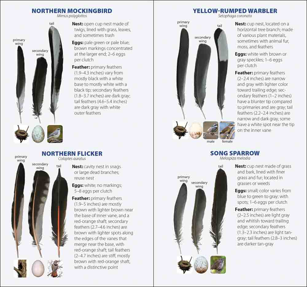 Identify bird eggs, feathers, and nests with this pocket-size booklet, organized by feather size for convenience of use.