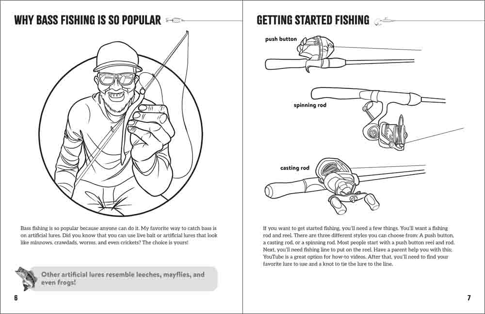 Get hooked on the exciting world of bass fishing with this coloring and activity book that’s filled with facts, tips, and fun games.