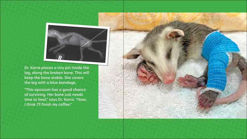 An opossum was attacked by a dog. A young owl swallowed a bit of lead. A turtle was hit by a car. These situations—and others just like it—are animal emergencies! Fortunately, there’s someone who can help: a wildlife veterinarian. Meet Doctor Karra from the Wildlife Center of Virginia (WCV) and follow her through an action-packed day.