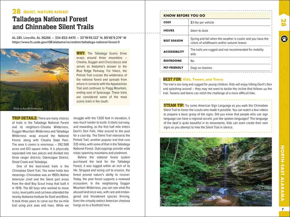 This parent-friendly travel guide is packed with honest advice, fun facts, and thoughtful tips to help you make the most of every outing. Each listing includes age recommendations, accessibility info, local history, and STEAM-inspired ideas to help kids of all ages connect with the natural world in meaningful ways.